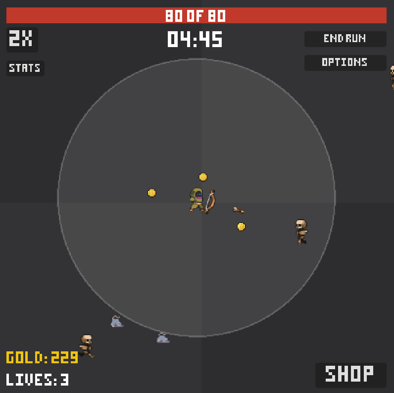 Nice game. A few things, 2X is still too slow, is it possible to add 4x or even 8x? Also, I don't know if it's a bug, but when an enemy gets to the archer, the archer can't kill it apparently because it's too close, so basically spending gold on health is useless since as soon as one enemy touches him it's certain death, no matter the health. Also, I don't understand why yet, but the first life lasts like 15-20 minutes, but the second life lasts just 2 or 3 minutes, I don't know if it's intentional, but I'd check the balance on that too. Other than that is't a pretty cool idle game. Good job!